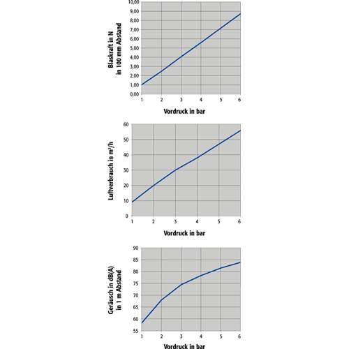 Anwendungsgebiete sind zum Beispiel das möglichst geräuscharme Reinigen, Trocknen, Kühlen, Sortieren oder Transportieren von Teilen, auch über größere Abstände zur Blasstelle.