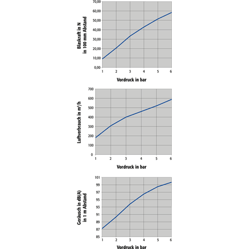 Damit die lärmgeminderte Blasdüse ihre volle Kraft entfalten kann ist unbedingt eine ausreichende Druckluftzuleitung zu gewährleisten.